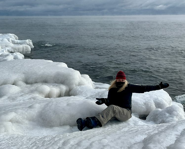 I met my son, and we did more icy exploration together. We climbed to higher ground at one point and were careful not to slip. I commented that it wasn’t the most dangerous climb I’d ever made. He said the same. I figured his dangerous climb, adventuresome as he is, was much greater than mine. But who was competing? We were there to see the ice along Lake Superior. And we did!